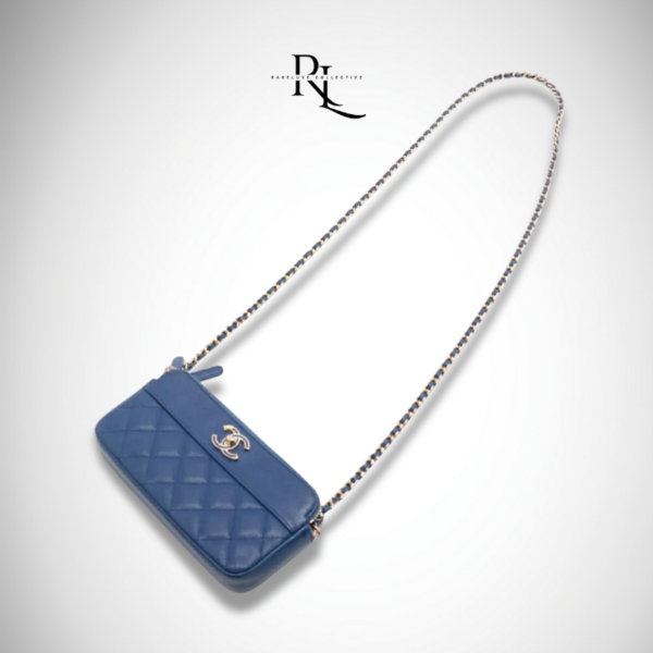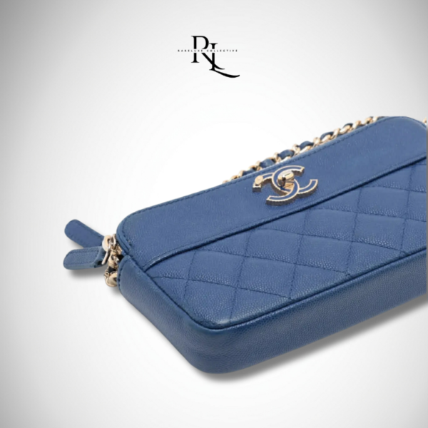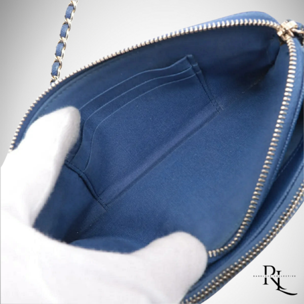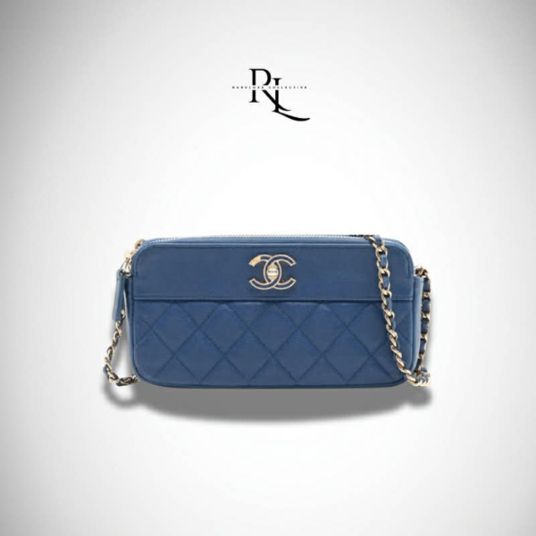 Delicate, chic, and effortlessly elegant, the Chanel Small Clutch With Chain in light blue is a refined accessory that blends timeless design with modern versatility. Crafted from durable caviar leather, this piece features the signature diamond quilting and iconic interlocking CC logo, delivering a classic Chanel aesthetic in a compact silhouette.