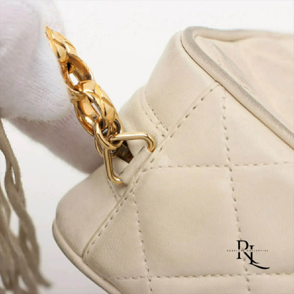 The Chanel Vintage Lambskin Camera Bag is a timeless statement piece that embodies classic Parisian elegance. Crafted from soft, luxurious lambskin leather, this iconic design features the signature quilted pattern and refined gold-tone hardware.